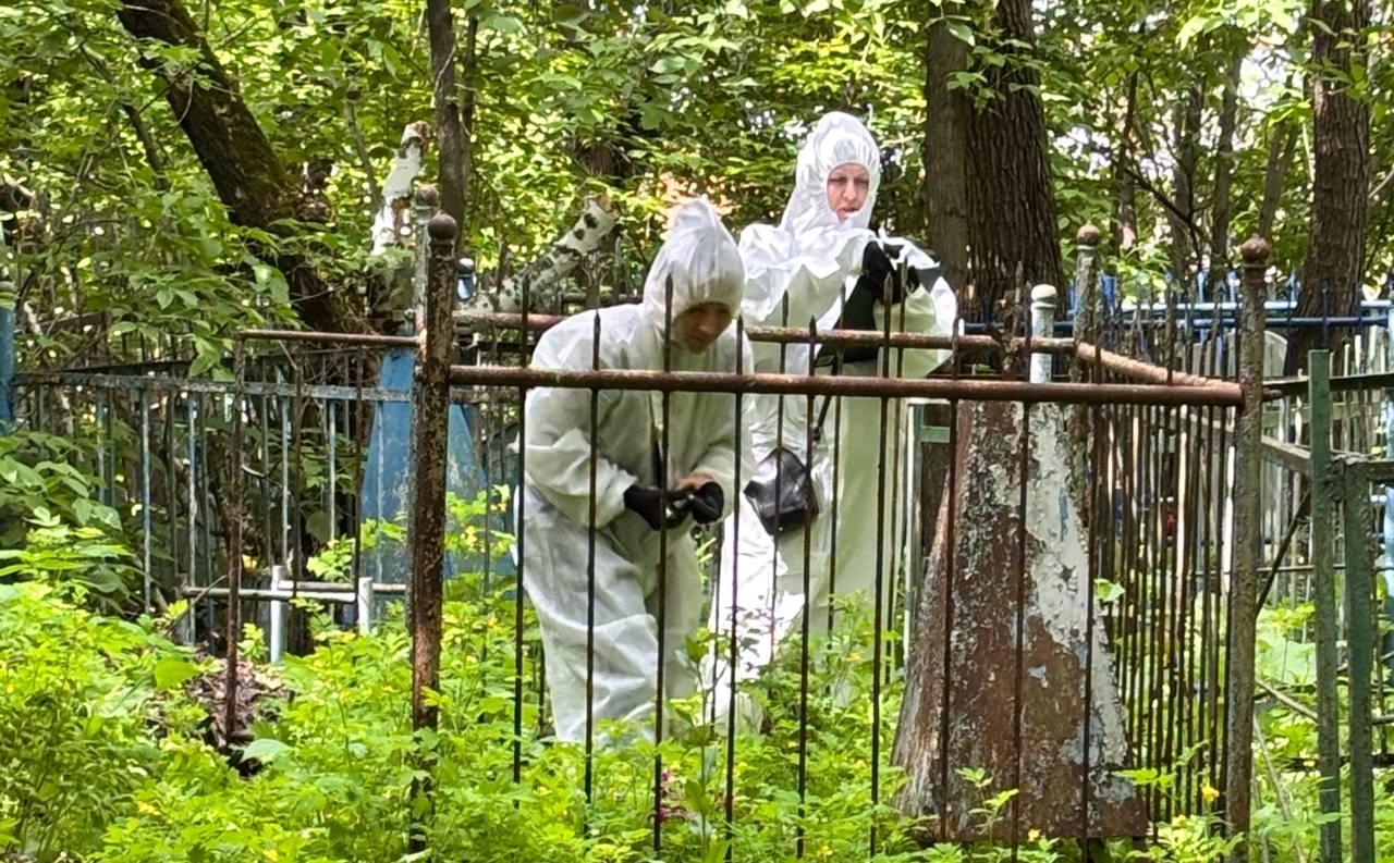 Толпу людей в белых костюмах заметили на кладбище в Новосибирской области