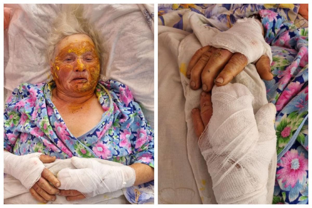 Женщина получила сложный перелом грудной клетки, ожоги лица, ног и рук. Фотографиями из больницы с Сиб.фм поделилась ее внучка.