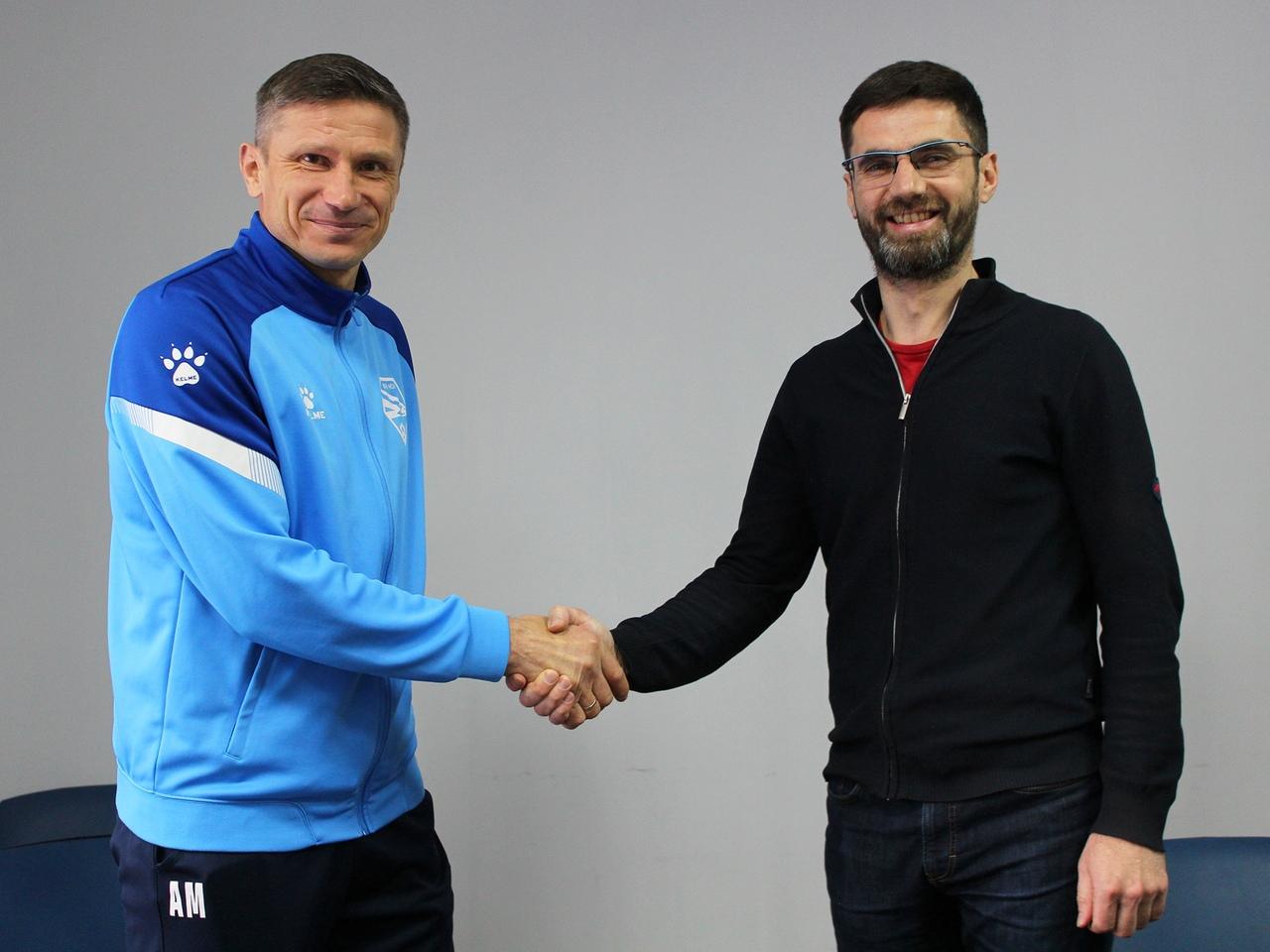 Алексей Медведев с гендиректором клуба Алексеем Толоконским. Фото: соцсети ФК «Сибирь»