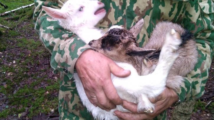 Грибники спасли двух потерявшихся козлят и вернули их маме