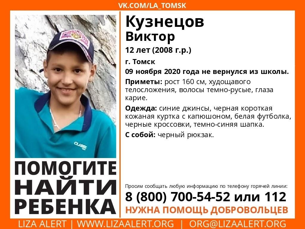 Напомним, о пропаже 12-летнего Виктора Кузнецова стало известно сегодня, 10 ноября. Мальчик накануне днём ушёл в школу и не вернулся домой.