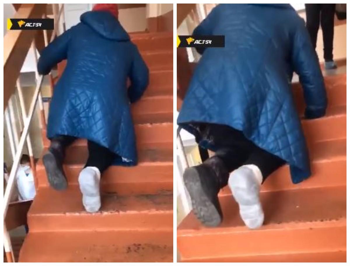 Под Новосибирском пациенты поликлиники сняли на видео пенсионерку, которая на четвереньках поднималась по лестнице в рентген-кабинет.