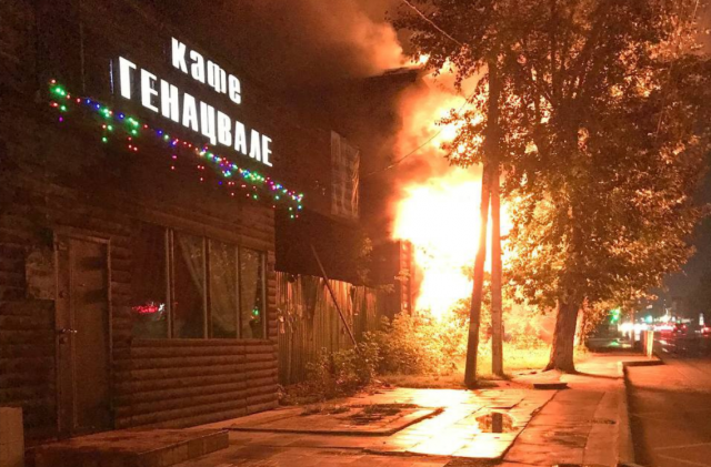 В доме 57/1 по улице Никитина произошел пожар, который охватил расселенный барак рядом с кафе «Генацвале».