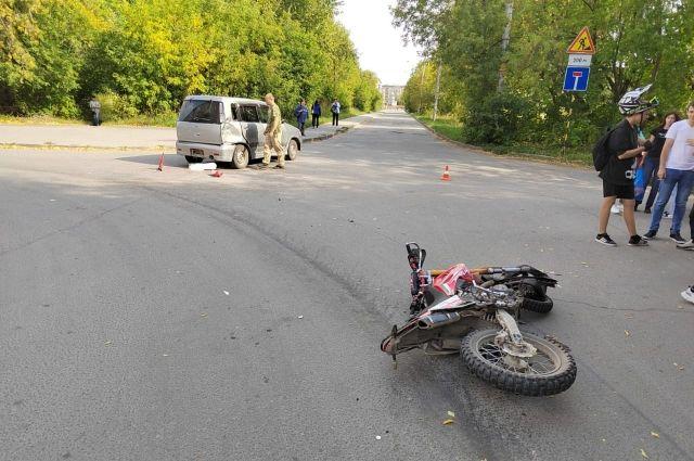 В 15 часов 10 минут на территории Калининского района мужчина 1981 года рождения за рулем автомобиля Nissan Cube напротив дома №23А по улице Новоуральской выезжал со второстепенной дороги и не предоставил преимущество мотоциклу под управлением парня 2007 года рождения. У молодого человека не было водительского удостоверения, уточнили в ведомстве.