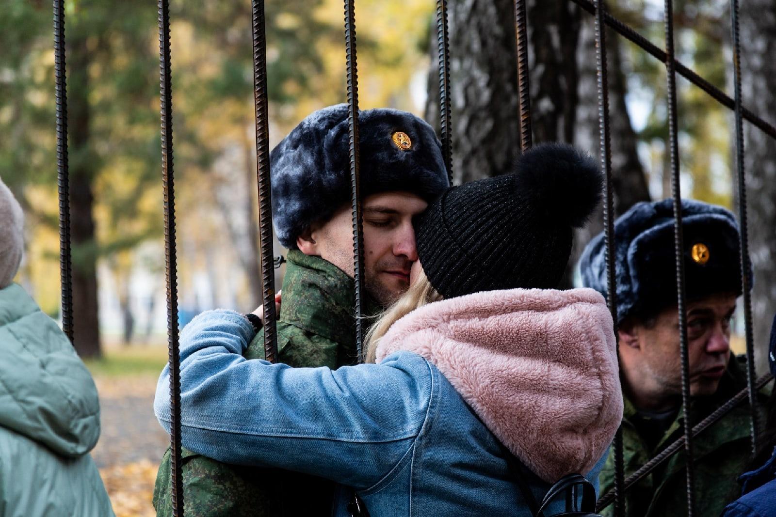 В Новосибирске у пункта сбора на территории НВВКУ прошло свидание мобилизованных с близкими. Родственники и жёны привезли мужчинам одежду, продукты и другие нужные вещи. Во время свидания была возможность пообщаться с любимыми — на фото корреспондента Сиб.фм Густаво Зырянова видно, как будущие солдаты ценят каждую минуту таких встреч.