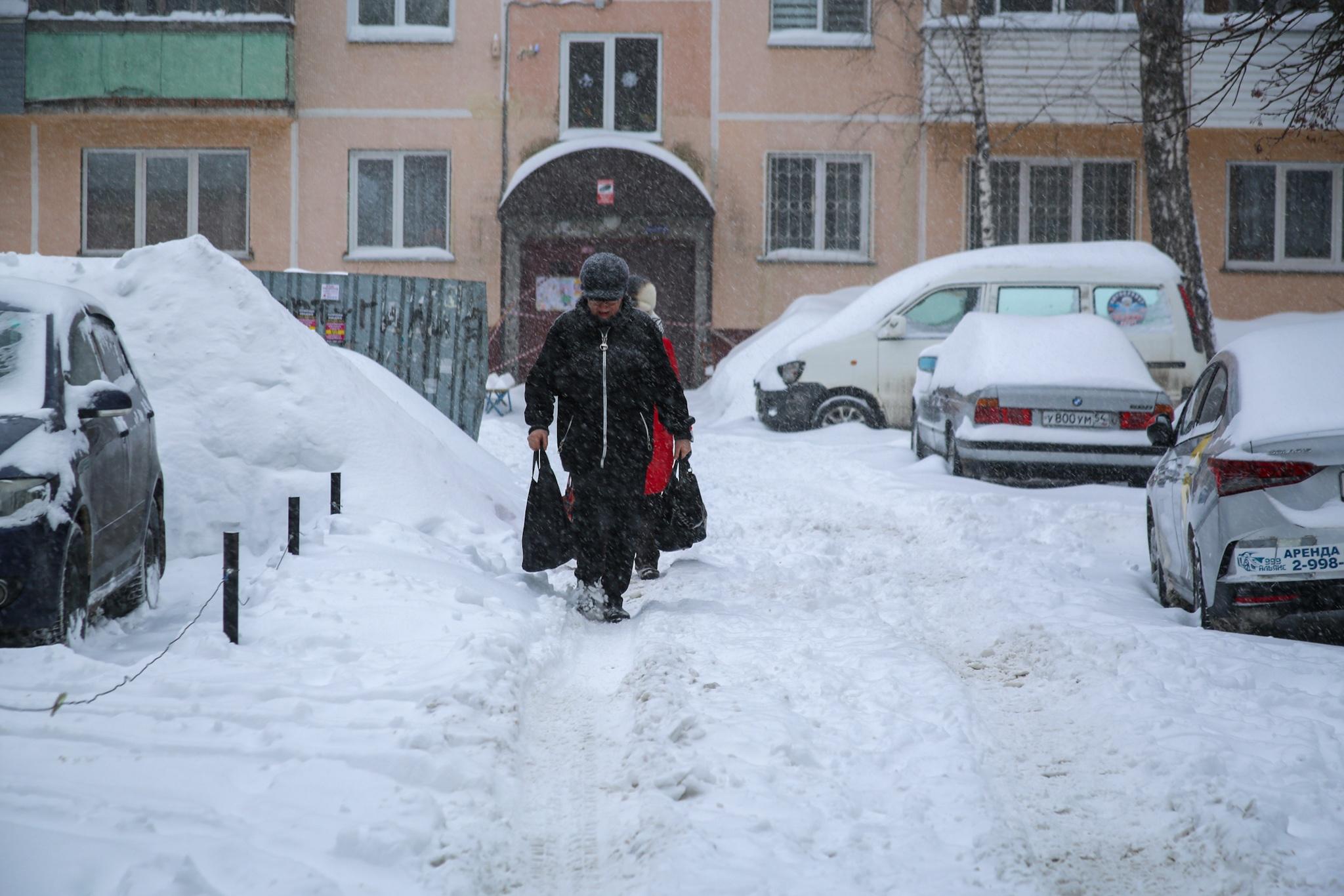 В центре Новосибирска образовалась толстая корка из утрамбованного снега.