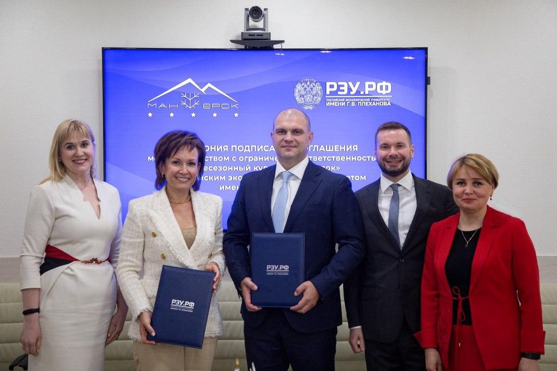 Всесезонный курорт Сбера «Манжерок» и Российский экономический университет имени Г. В. Плеханова договорились о сотрудничестве в сфере подготовки кадров в области туризма и горнолыжной индустрии. Соответствующее соглашение было подписано сегодня генеральным директором Всесезонного курорта «Манжерок» Владимиром Щербиниными проректором РЭУ Ксенией Екимовой.