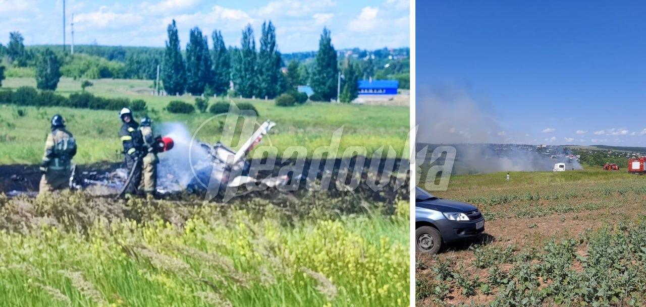 Самолет упал возле кемпинга и загорелся.