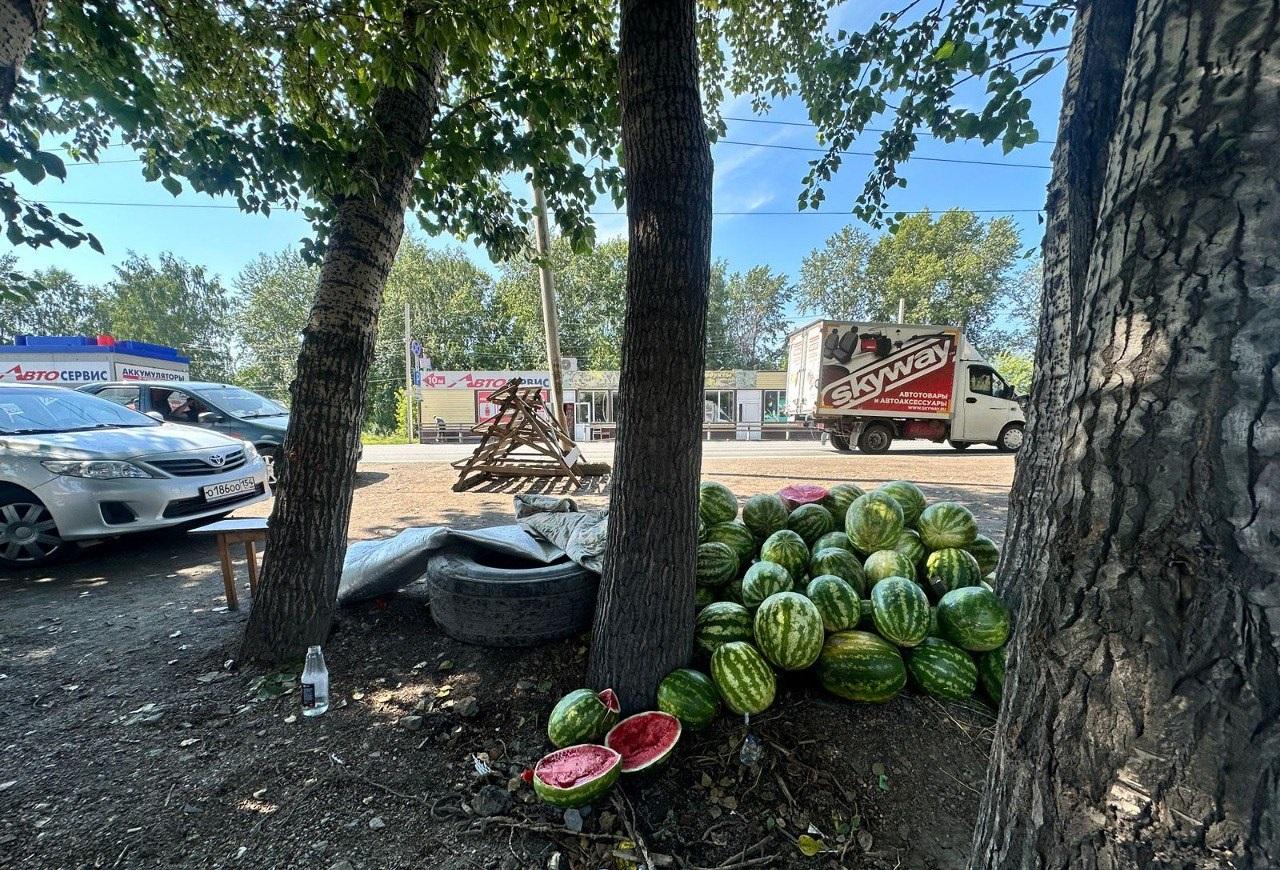 В ходе рейда внимание проверяющих привлекла арбузная «бахча» на обочине Ордынской трассы. При приближении полицейских продавцы поспешили скрыться, оставив 400 кг продукции, которой они торговали прямо с земли и из кузовов грузовиков.