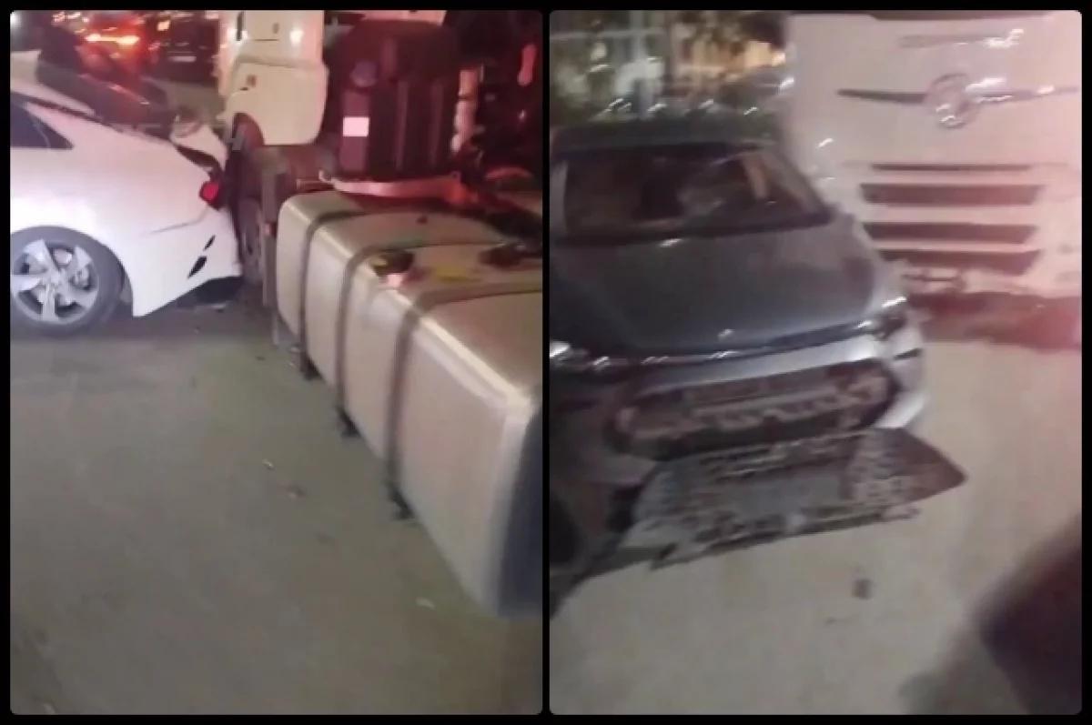 В Новосибирске произошло ДТП с участием тягача, который врезался в припаркованные автомобили недалеко от аэропорта Толмачёво.