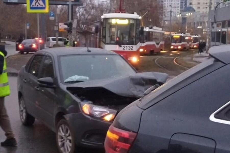 Столкнувшиеся машины заблокировали движение трамваев.