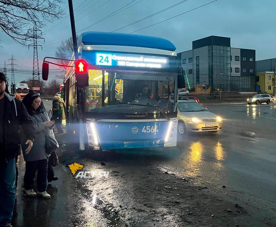 Водитель автобуса, подрезавший троллейбус, остановился рядом с местом ДТП. Сотрудники ГАИ работают на месте и устанавливают обстоятельства аварии.
