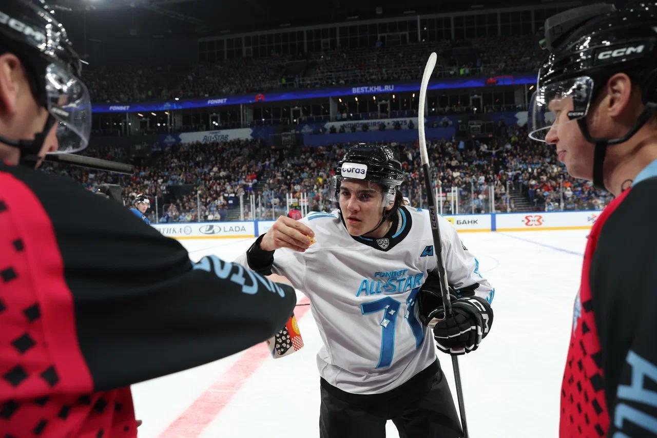 В первом полуфинале команда дивизиона Чернышова, за которую выступают игроки «Сибири», победила сборную дивизиона Харламова со счетом 10:6.