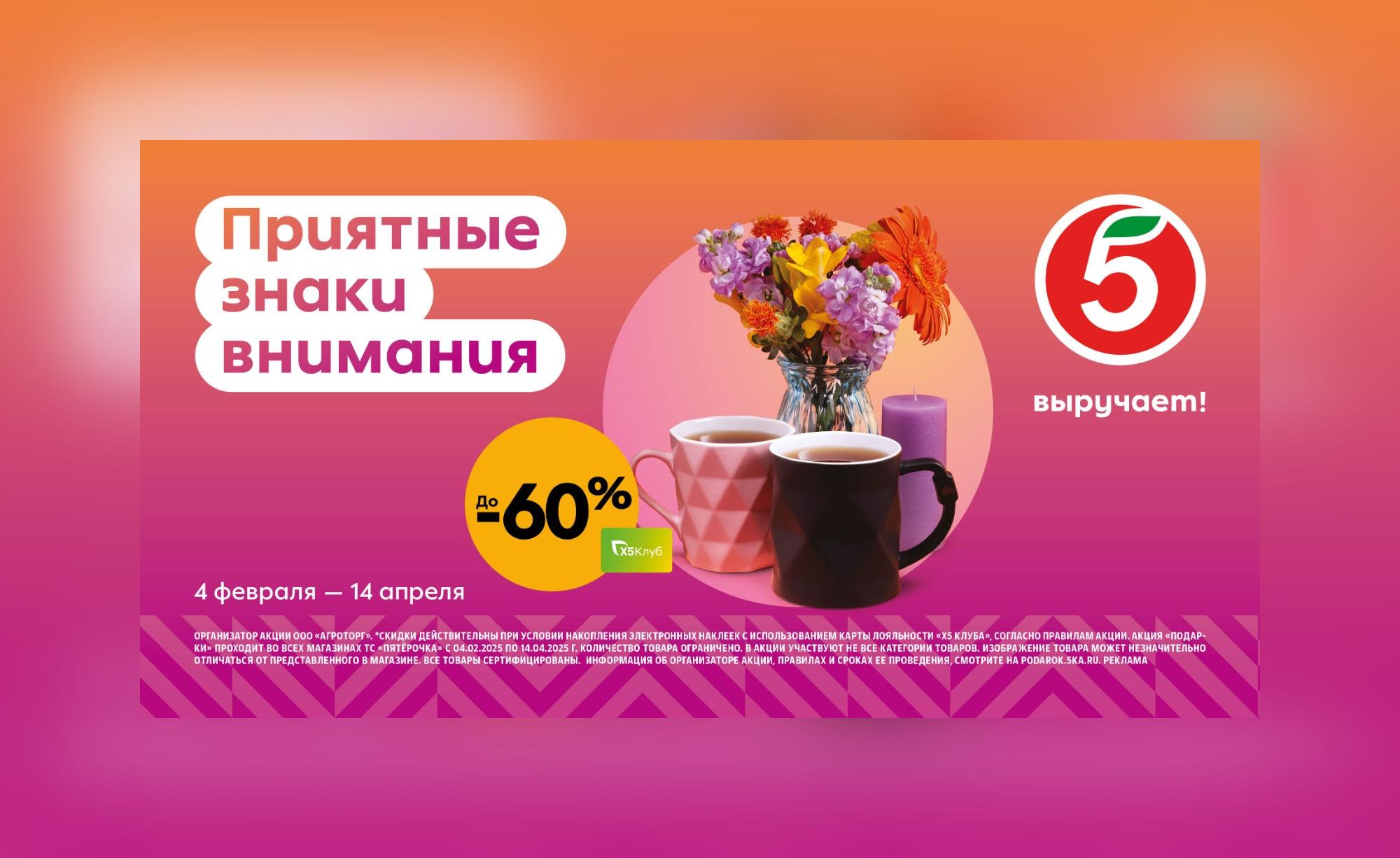 «Пятёрочка» объявила о старте новой накопительной акции «Приятные знаки внимания», которая будет действовать до 14 апреля 2025 года. В рамках неё покупатели смогут приобрести стильные предметы интерьера со скидкой до 60%.