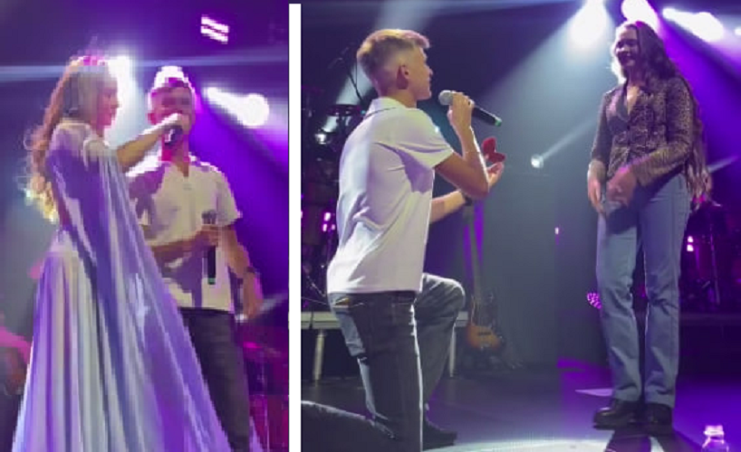 Молодой человек из Новосибирска, видимо заранее договорившись с певицей, вышел на сцену вместе со своей девушкой. Сибиряк встал на одно колено, задав главный вопрос: "Выйдешь ли ты за меня?", плюс вручил девушке кольцо.
