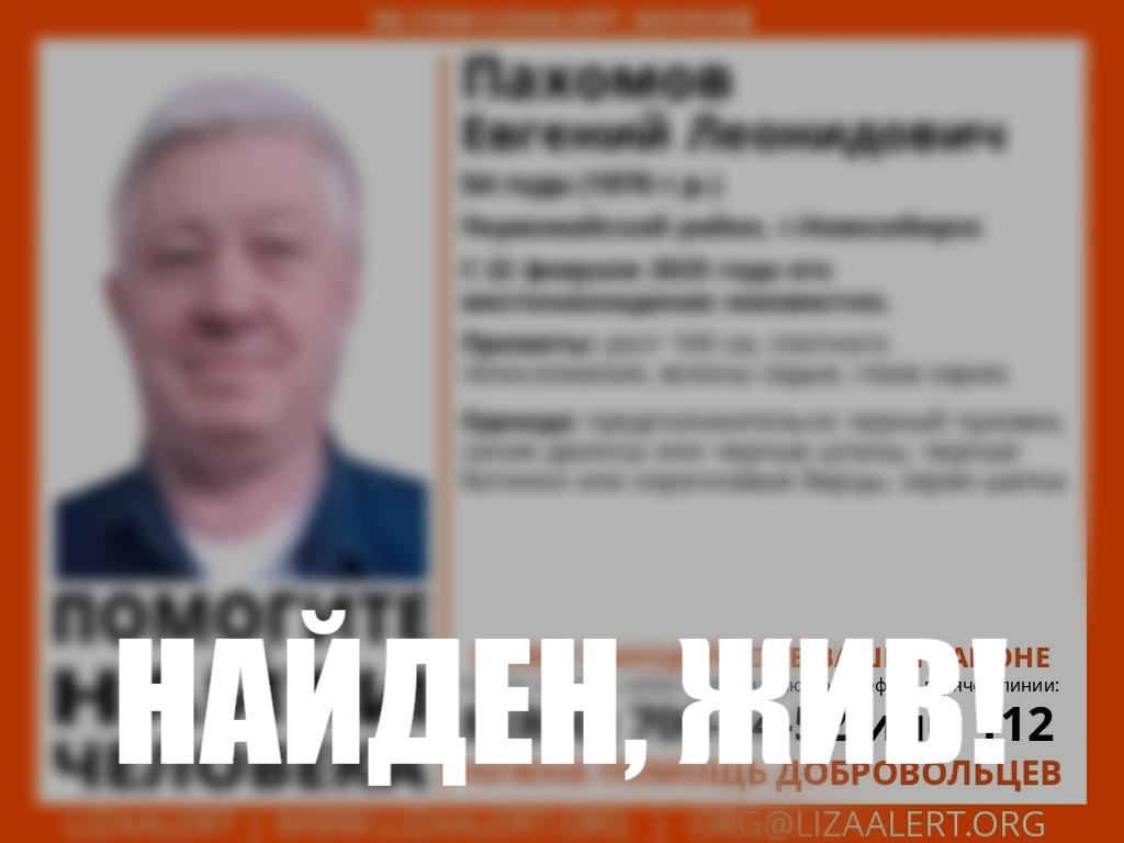 22 февраля новосибирские волонтёры бросили часть ресурсов на поиск 54-летнего Евгения Пахомова, который бесследно исчез в Первомайском районе. О мужчине было известно следующее: рост 169 см, телосложение – плотное, волосы — седые, а глаза тёмные (карие). При выходе из дома был одето во всём чёрном, а именно пуховик, штаны, ботинки. Однако шапка была серая, джинсы синие. Искали пропавшего несколько дней, и лишь вечером двадцать седьмого февраля стало известно, что нашли. Обстоятельства не сообщаются.