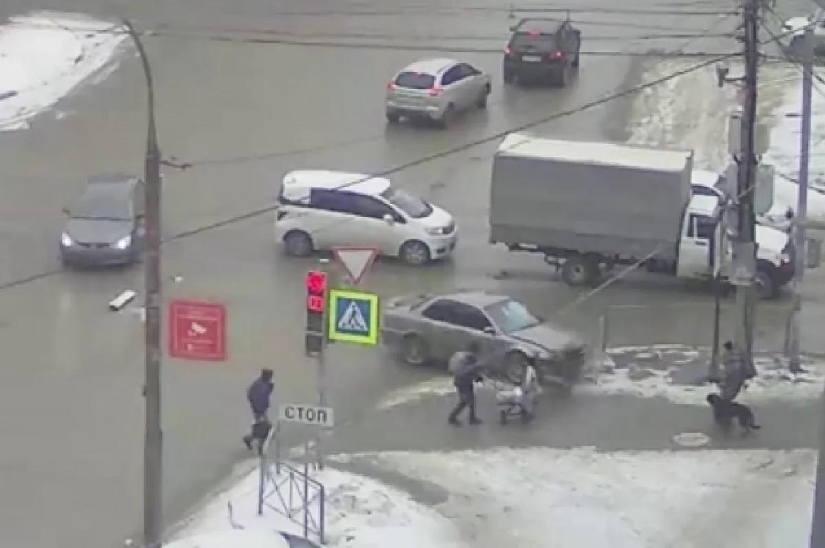 В Новосибирске автомобиль выехал на тротуар после столкновения.