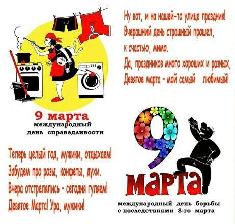Сегодня, 9 марта, отмечается шуточный праздник под названием «День борьбы с последствиями 8 марта».