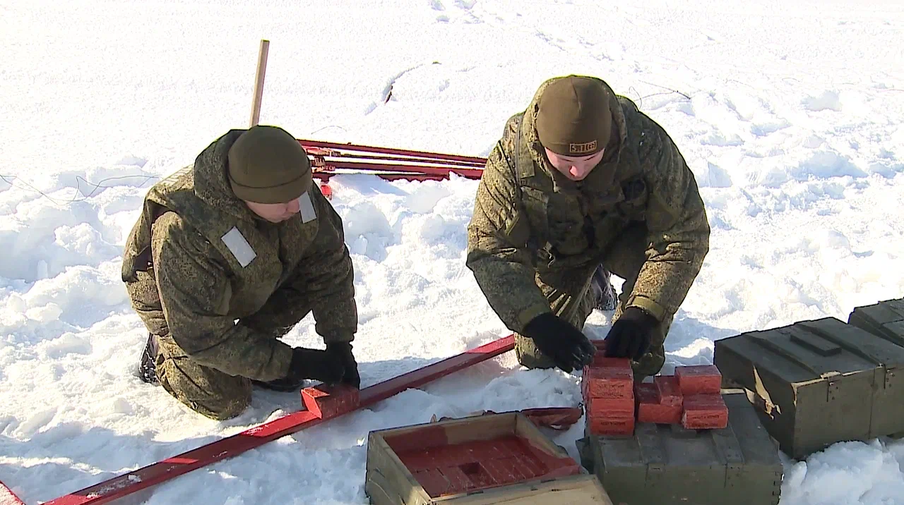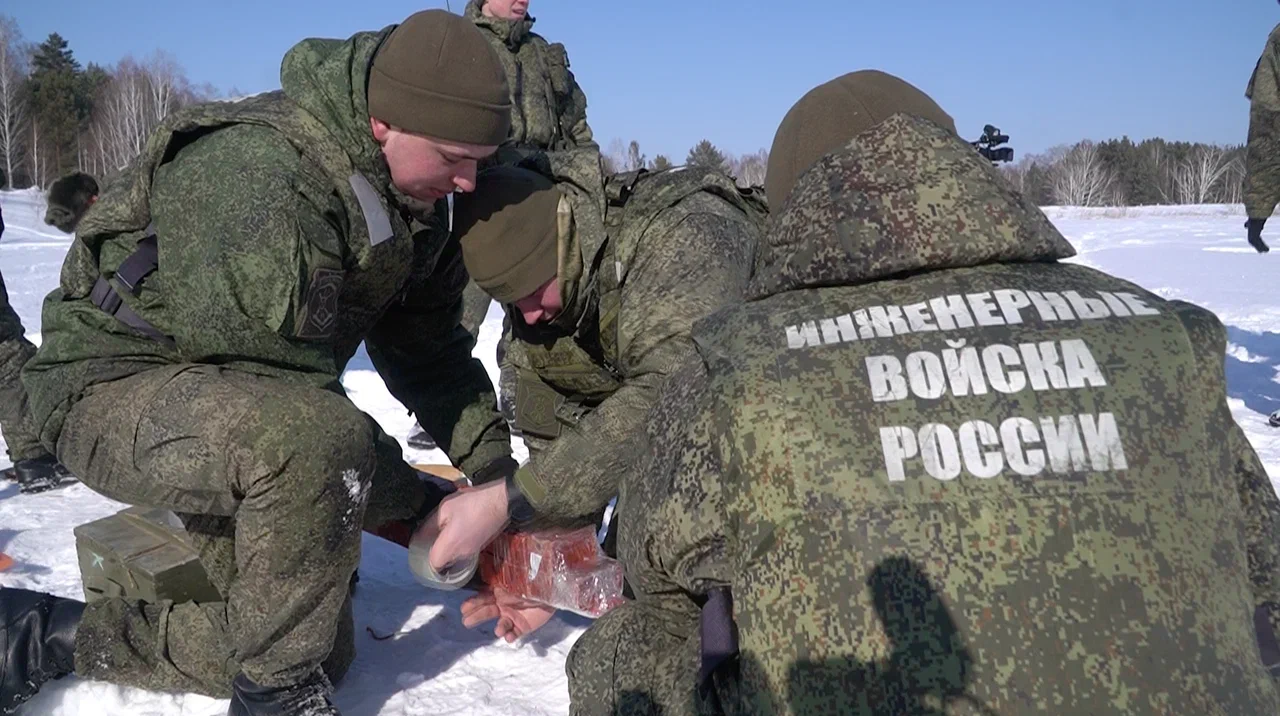 На льду проходили учения инженерных войск России. Фотокорреспондент Сиб.фм побывал на месте подрыва и сделал яркие кадры.
