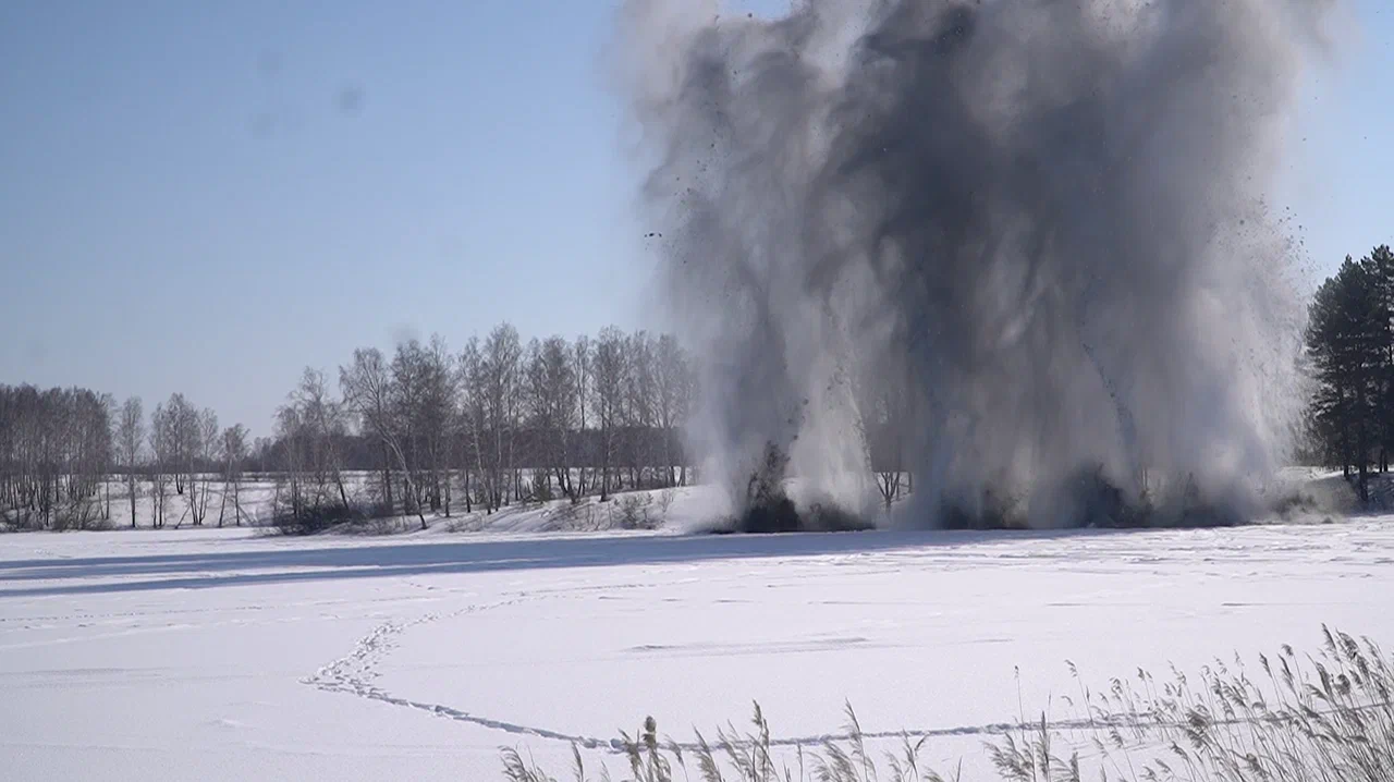 12 марта в Новосибирской области был произведен взрыв льда на реке Обь.