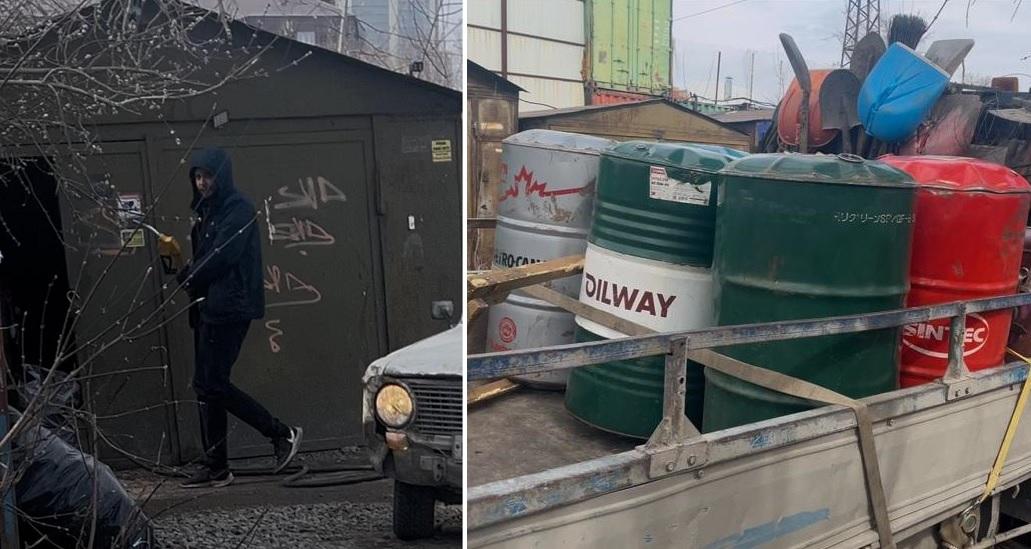 Подпольную заправку обнаружили в одном из гаражей по улице Бродского.
