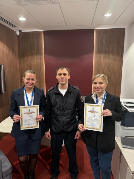 За внимательность и помощь в раскрытии преступления руководство МВД по Новосибирской области поблагодарило сотрудниц банка. Благодарственные письма от имени начальника регионального главка МВД генерал-лейтенанта полиции Андрея Кулькова вручил подполковник Михаил Слабухо.