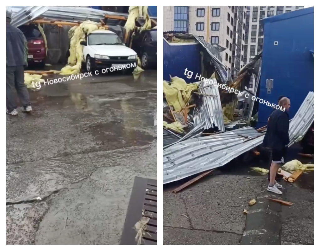 В Дзержинском районе Новосибирска ураганный ветер стал причиной срыва крыши со склада. Упавшие элементы конструкции повредили стоящие рядом автомобили. Согласно информации из телеграм-канала «Новосибирск с огоньком», происшествие случилось на территории складского комплекса, расположенного в Комбинатском переулке, 3.