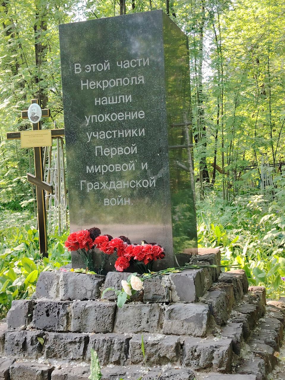 «Здесь похоронены солдаты, офицеры и добровольцы первого Ново-Николаевского стрелкового полка, павшие в боях Гражданской войны. Сегодня мы помянули их, возложили цветы, организовали панихиду в той же церкви, где их отпевали в 1919-м. Памятник установлен при участии пермских реконструкторов», — рассказали участники военно-исторического клуба.