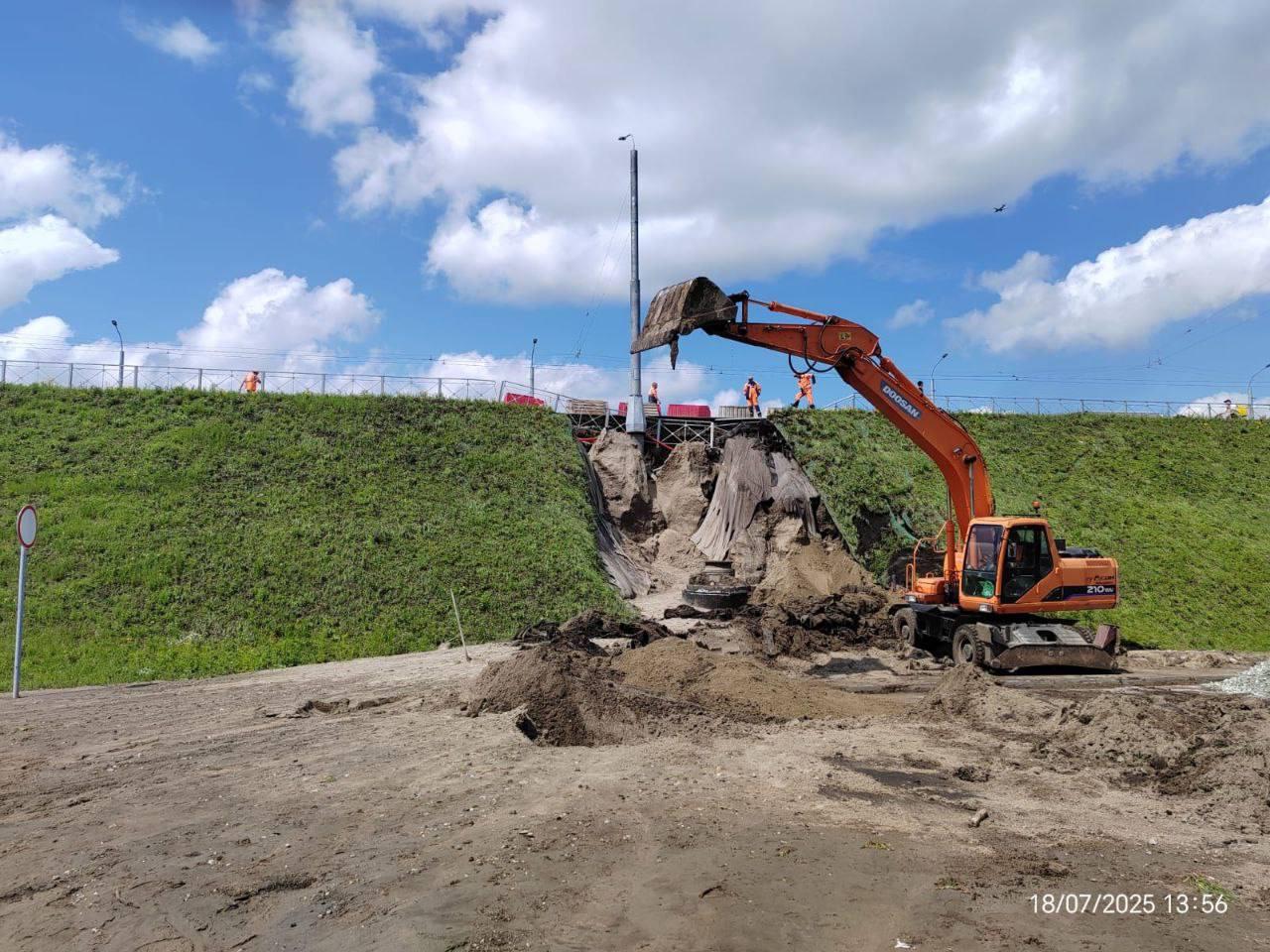 В Новосибирске стартовали восстановительные работы на дамбе Октябрьского моста, поврежденной в результате сильных дождей.