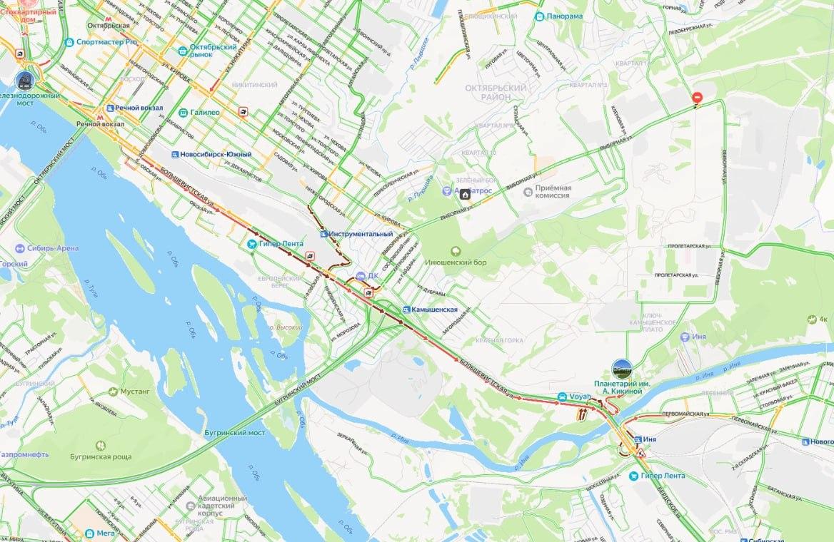Пробка более чем в шесть километров растянулась на Большевистской улице в Новосибирске. По состоянию примерно на 19 часов 30 минут движение было затруднено в сторону Академгородка от пересечения с Добролюбова до остановки «Река Иня». Об этом пишут жители столицы Сибири в социальных сетях и мессенджерах.