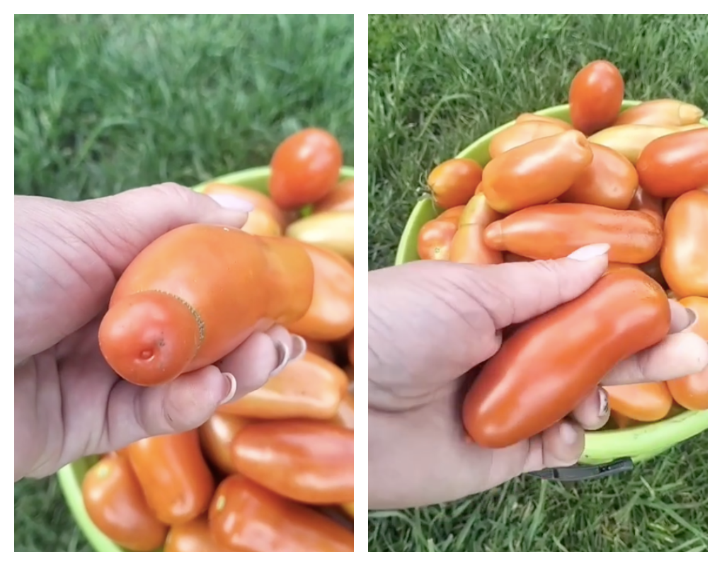 Сибирячка собрала целое видно помидор в виде мужского достоинства.