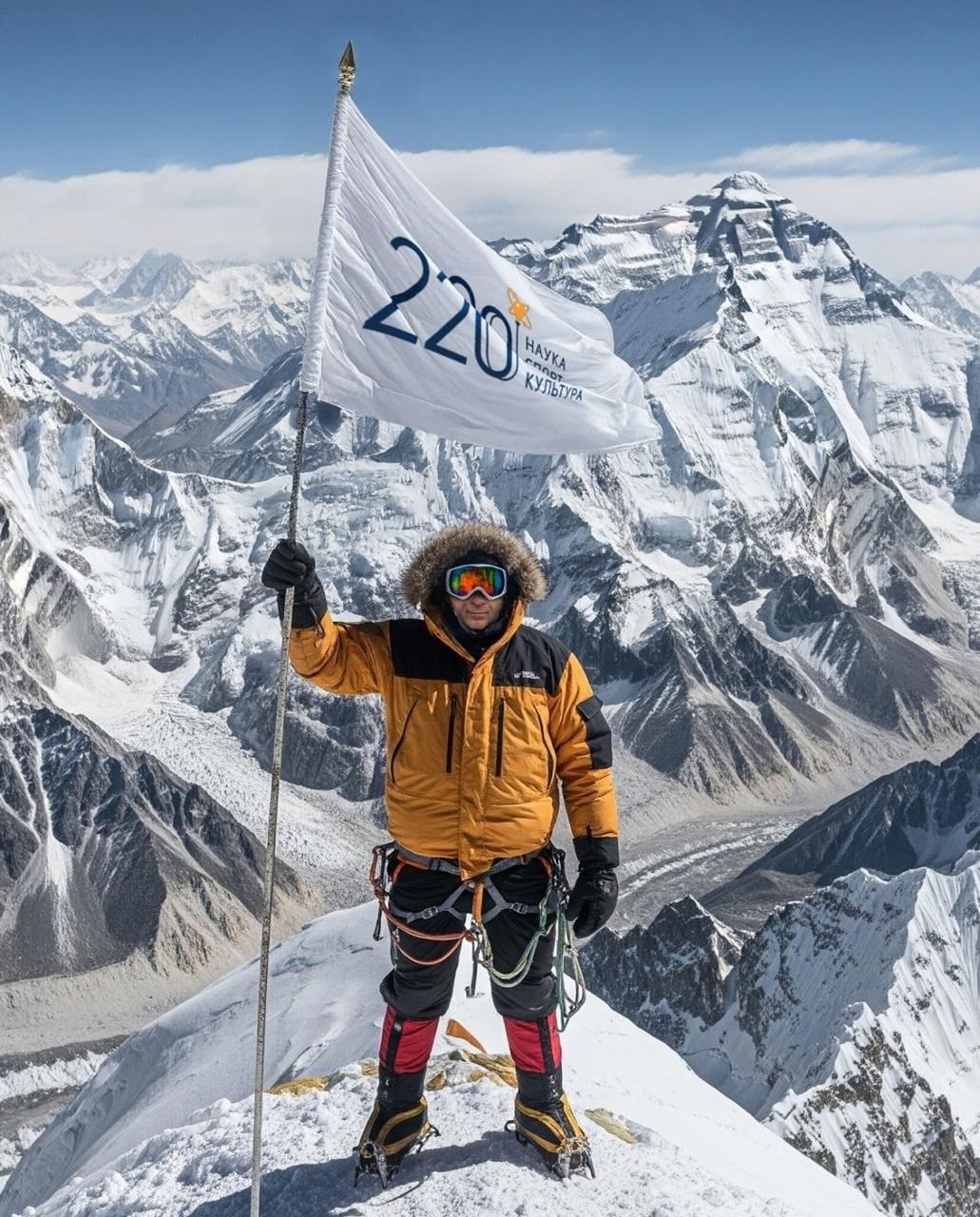 Во время восхождения на высоту 5364 метра преподаватель Олег Кунгуров установил флаг своей школы на склонах Гималаев.
