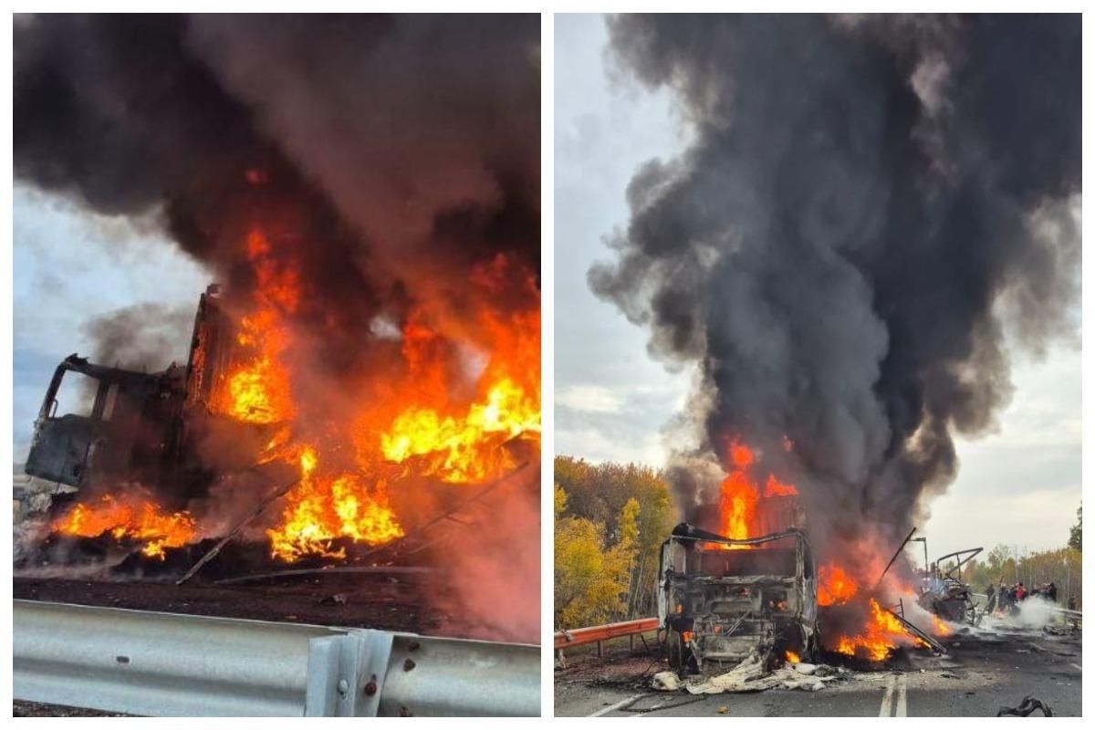 Столкновение привело к возгоранию одной из фур и «Газели». В настоящий момент огонь уже потушен. К сожалению, водитель «Газели» скончался на месте происшествия. Установление всех обстоятельств происшествия контролирует прокуратура.