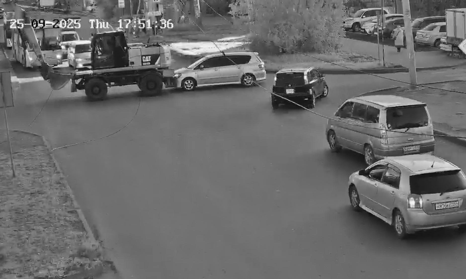 Интеллектуальная камера наблюдения, установленная на площади Кирова, зафиксировала инцидент с участием спецтехники.
