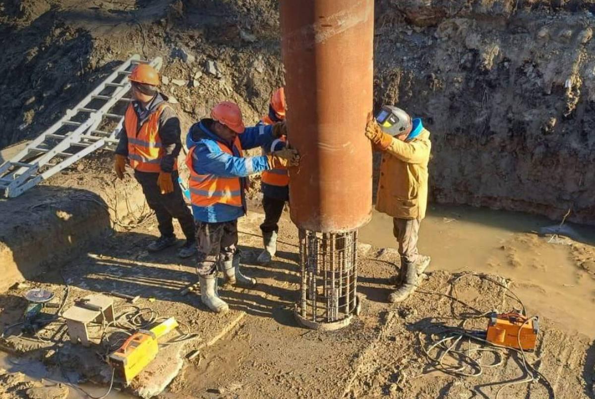 Уже завершено погружение свай, идут бетонные работы по устройству опор в Дзержинском районе. На стороне Калининского района продолжается погружение свай и прокладка кабельной траншеи.