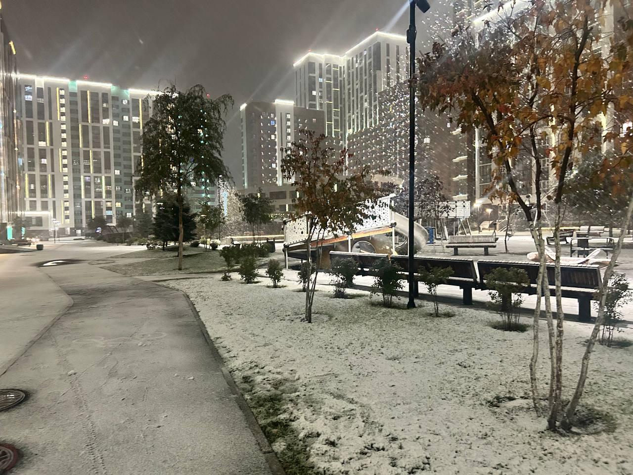 В ночь на 5 октября улицы Новосибирска засыпало снегопадом. На улице идут интенсивные осадки. Ночью наблюдается слой снега на дороге, возможно к утру он растает.