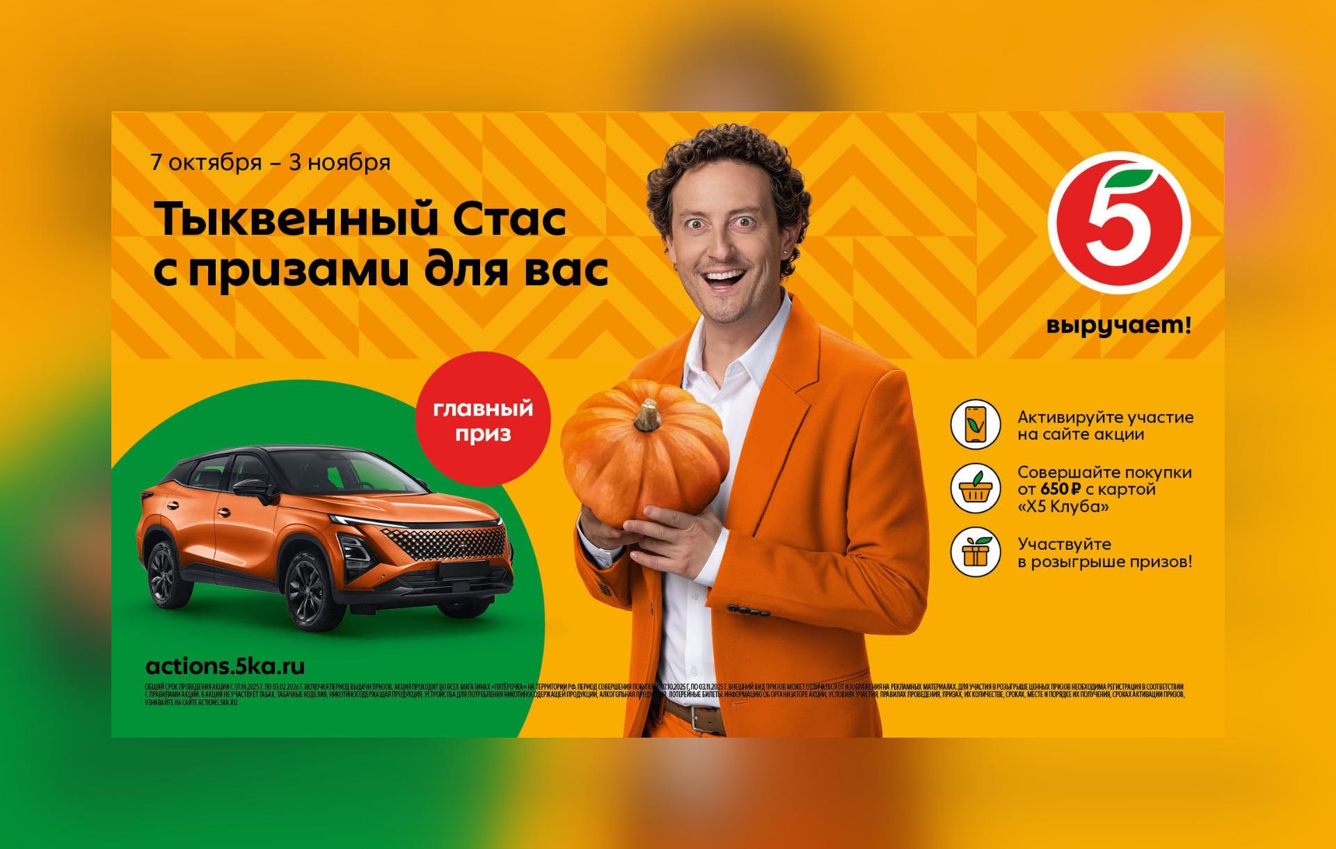 Торговая сеть «Пятёрочка» запустила масштабную осеннюю акцию «Тыквенный Стас», главным призом в которой является стильный автомобиль и путешествие по России. Кампания продлится до 3 ноября 2025 года.