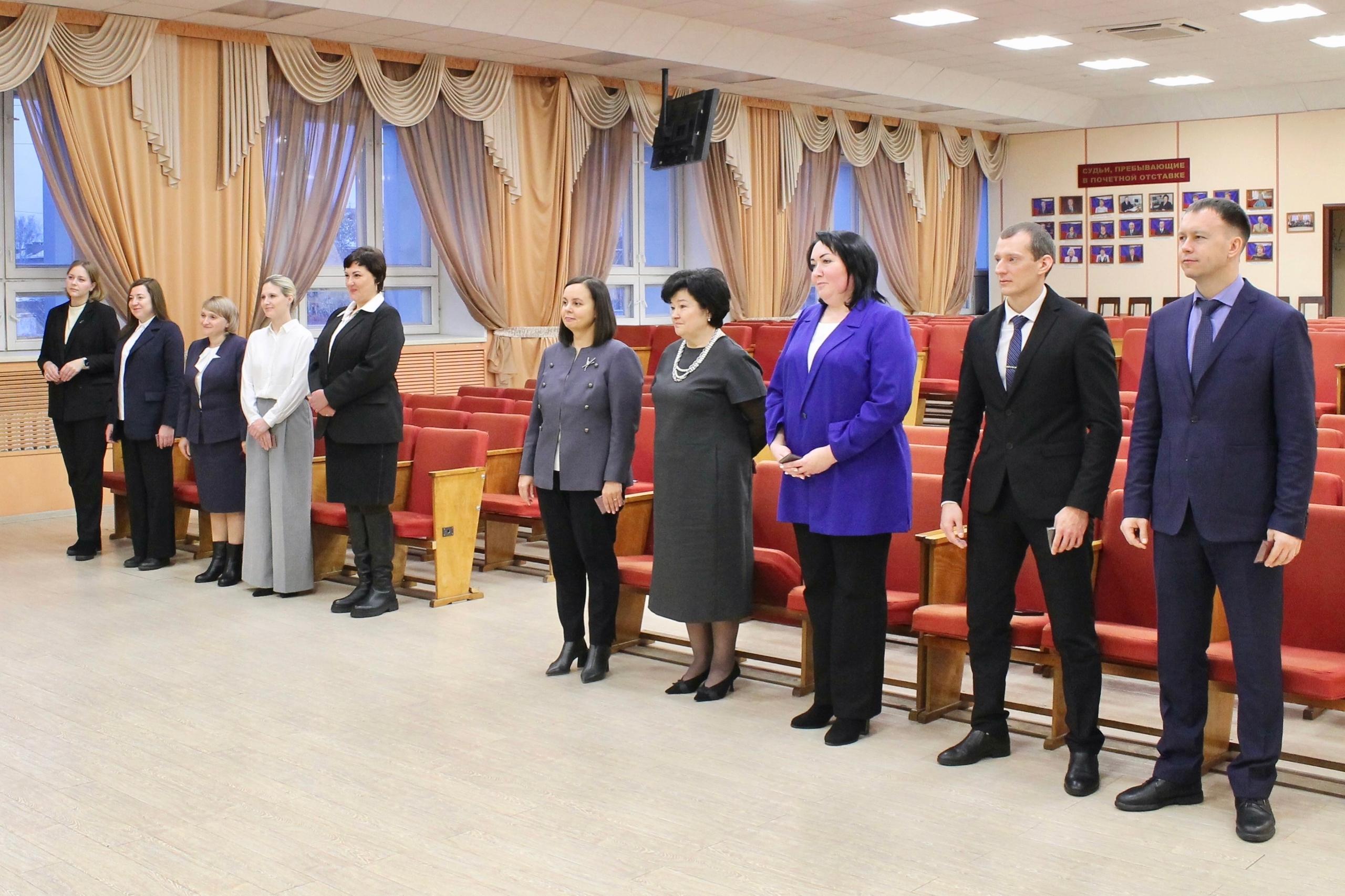 Удостоверения получили зампредседателя Арбитража Алексей Стрункин, председатель Советского районного суда Наталья Воронова, председатель Доволенского районого суда Наталья Буянова и шестеро новых судей районных судов.