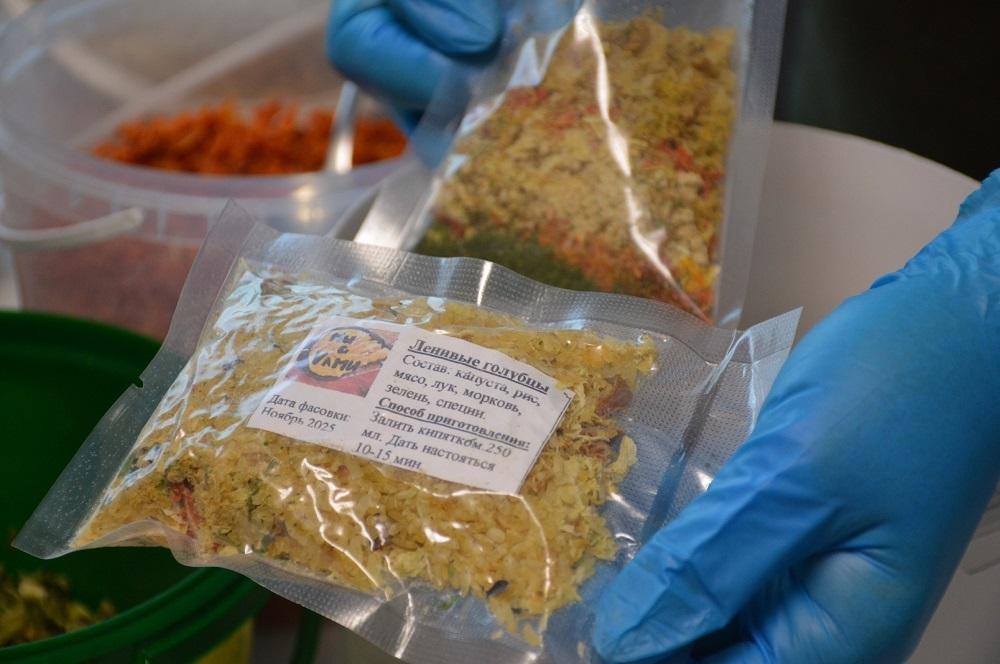 Одним из ингредиентов пайков стали домашние солёные огурцы, которые готовит жительница села Лебедевка. Из продукта делают сушёный рассольник по рецепту, разработанному для длительной транспортировки и хранения. Готовые наборы передают по заявкам военнослужащих.