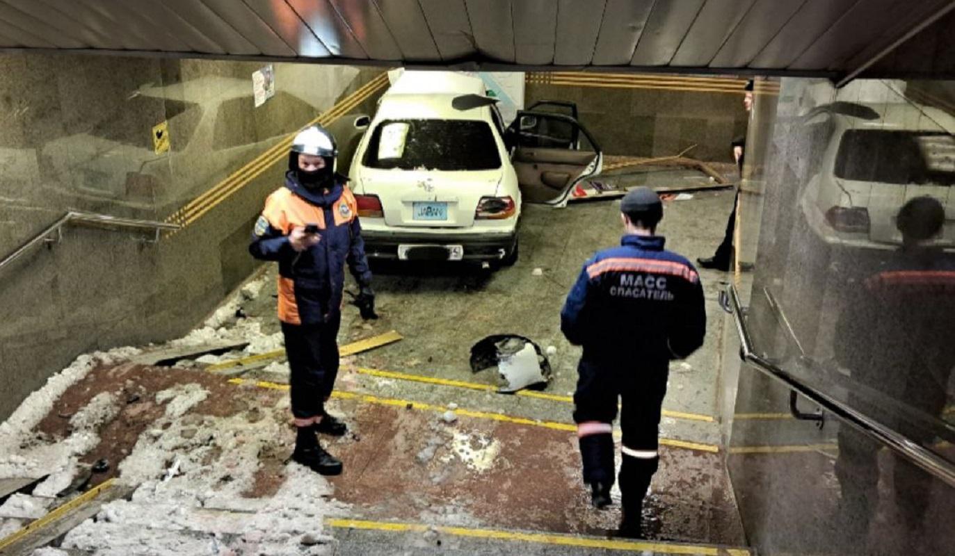 Сразу после аварии водитель покинул место происшествия. Прибывшие на место спасатели произвели демонтаж сильно поврежденных элементов входной двери. В извлечении автомобиля из подземки помощь специалистов не понадобилась.