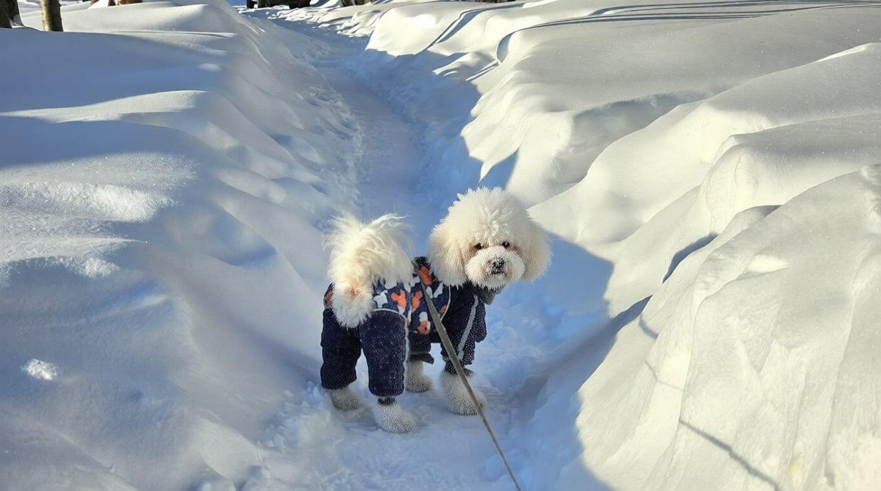Не остались в стороне и домашние животные. У собак на шерсти появляются тонкие ледяные узоры, которые делают их почти сказочными персонажами. Деревья и кустарники тоже преобразились — ветви словно покрыты прозрачным хрусталём и искрятся на солнце.