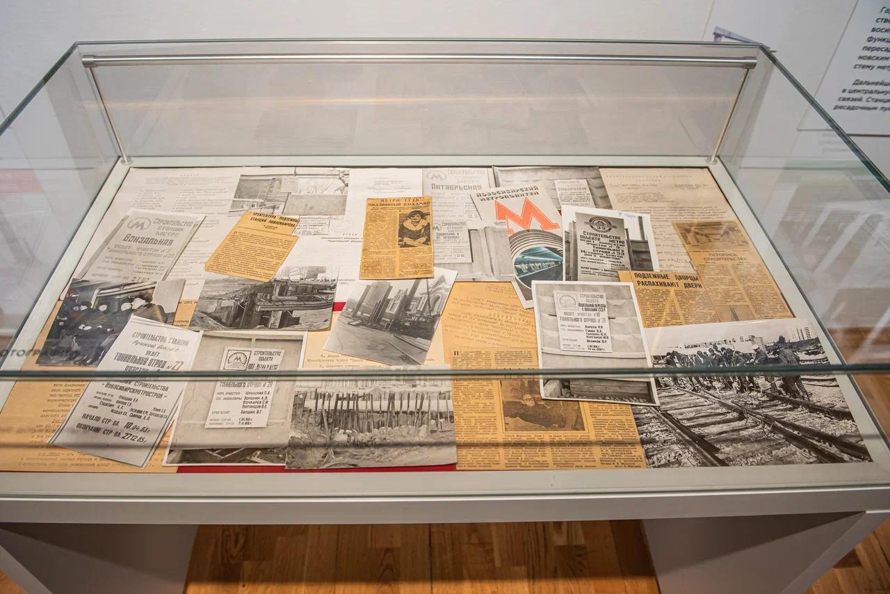 Посетителям представили более ста экспонатов, связанных с эпохой метростроя. Среди них — отбойные молотки, строительные каски, сохранившие следы подземной пыли, а также советские знамена, которые когда-то поднимались над стройплощадками. Эти предметы передают масштаб и физическую напряжённость труда людей, создававших метро.
