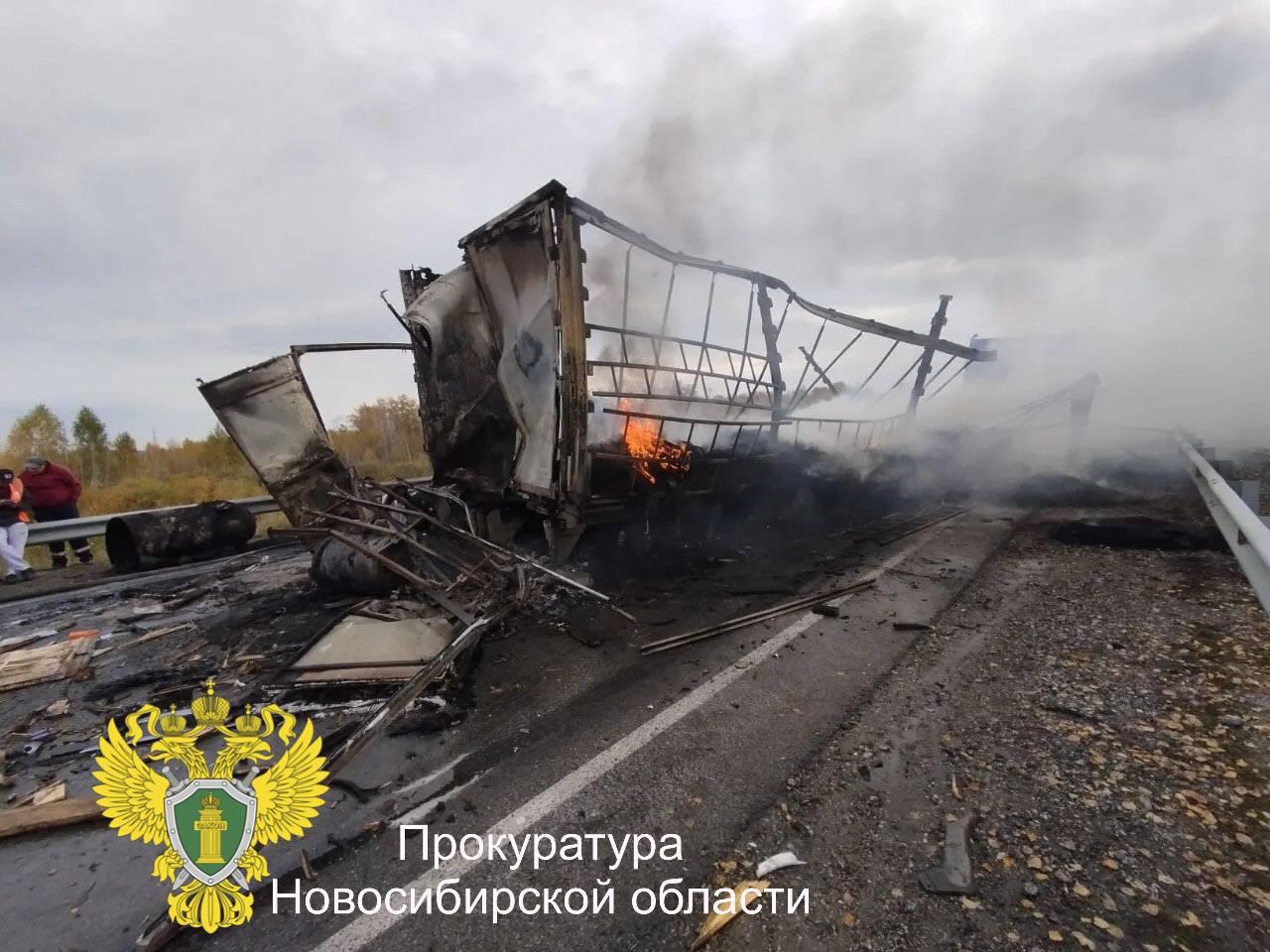 В результате ДТП «ГАЗель» и тягач полностью сгорели, а водитель «ГАЗели» погиб на месте. Уголовное дело передано для рассмотрения по существу в Барабинский районный суд.