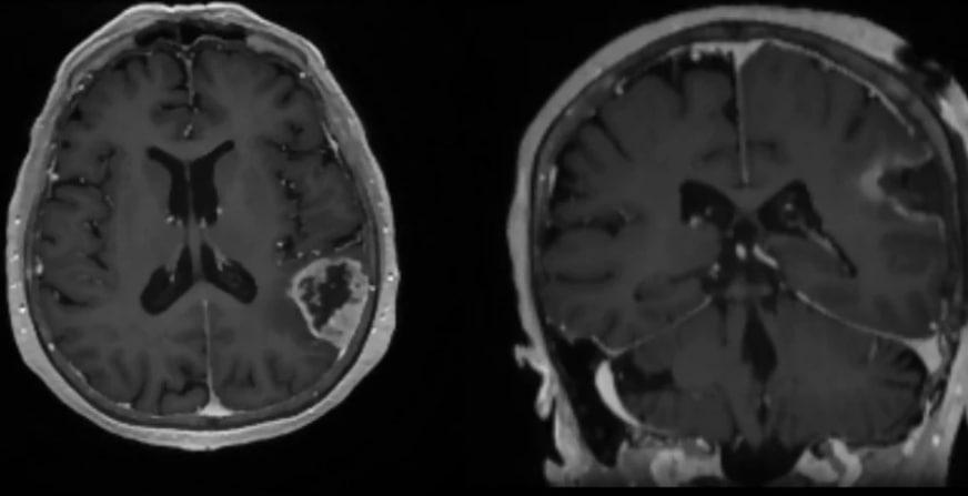 После курса лечения состояние улучшилось: пенсионерка вернулась к домашним делам, готовила, убирала. Но вскоре начала заикаться. Обследования, включая МСКТ и МРТ, выявили объёмное образование в левой теменной доле. Опухоль размером 3×4×5 сантиметров оказалась причиной ухудшения самочувствия.