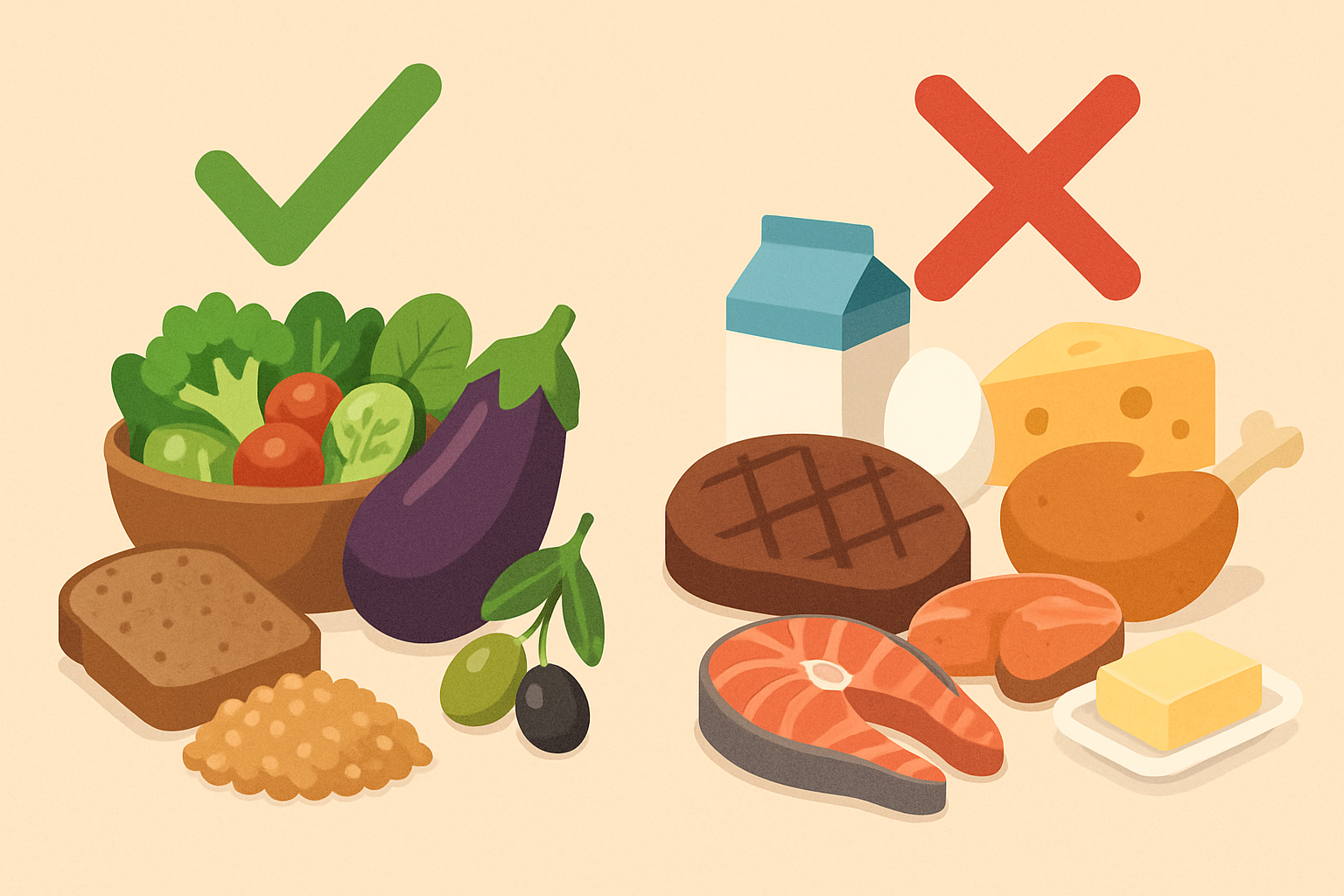 Допускается употребление растительных продуктов, приготовленных без масла: каши, овощные блюда, грибы и супы. Термическая обработка может включать варку, тушение и приготовление на пару.