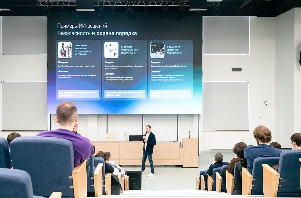 Председатель Сибирского банка Сбера Дмитрий Солнцев выступил с лекцией «Человек в эпоху технологических изменений» в новом кампусе Новосибирского государственного университета. В формате диалога Дмитрий Солнцев обсудил со студентами первых курсов Экономического факультета и Института интеллектуальной робототехники НГУ уровень развития технологий искусственного интеллекта (ИИ) сегодня и перспективы их влияния на нашу жизнь в ближайшем будущем, а также о том — как взаимодействовать с ИИ, чтобы идти в ногу с прогрессом.