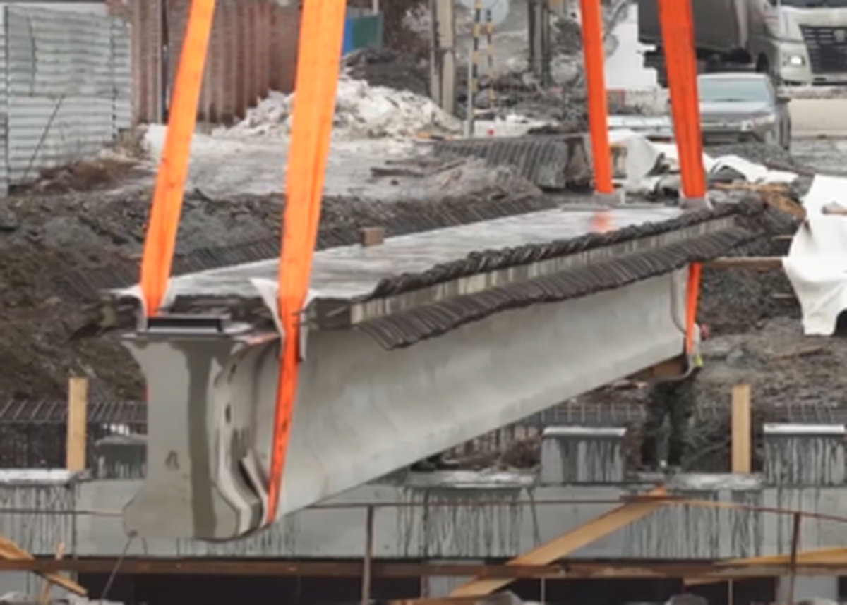 На сегодняшний день на объекте установлены все сваи, полностью готовы три опоры, завершаются работы по возведению четвёртой. Ведётся монтаж балок пролетного строения между второй и третьей опорами. Во время визита мэр дал команду на начало монтажа шестой балки – всего в этом пролете их будет четырнадцать.