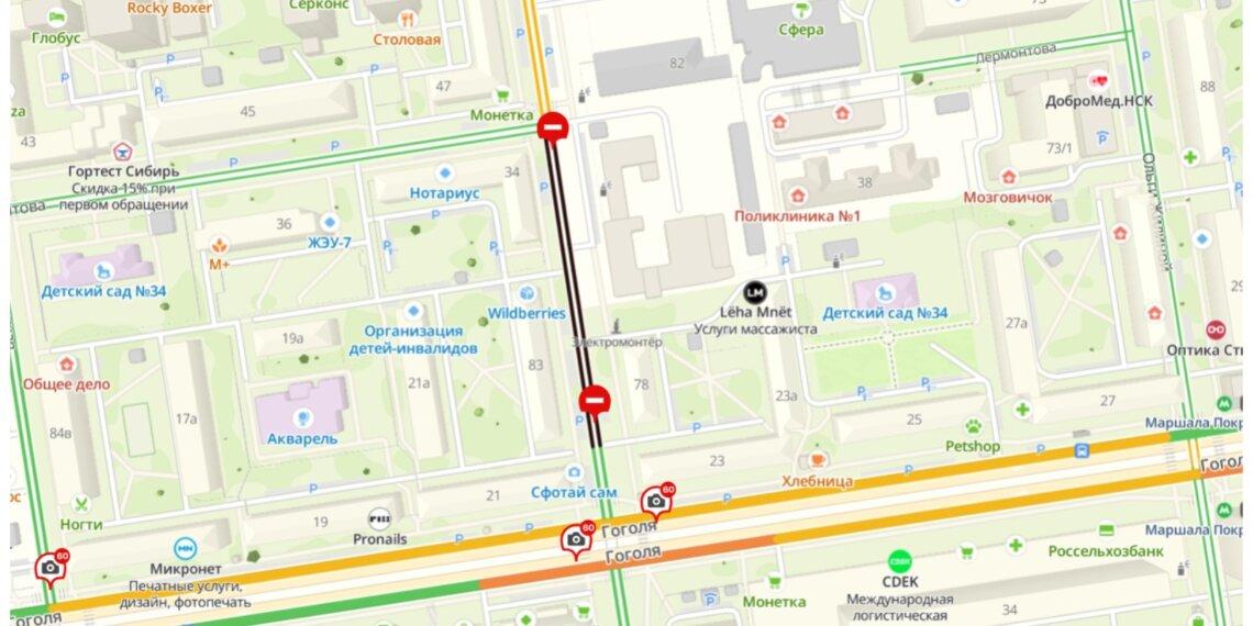 В Новосибирске временно ограничили движение на участке улицы Семьи Шамшиных — от дома № 83 до пересечения с улицей Гоголя.