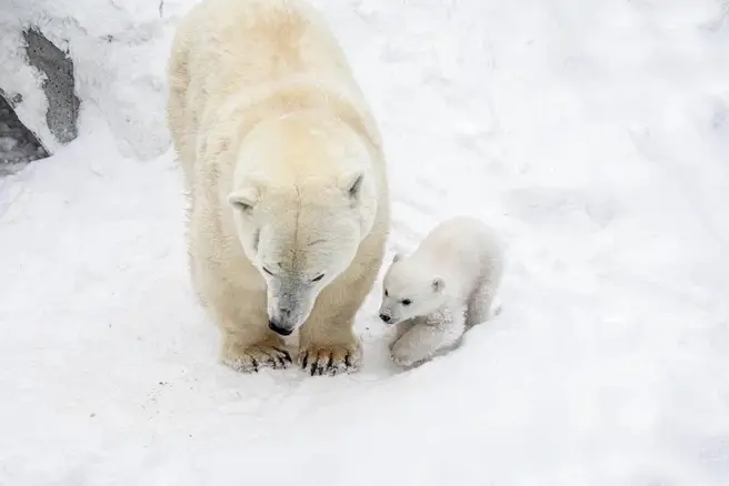Известно, что медвежонок появился на свет около пяти месяцев назад, 7 декабря 2025 года. Сначала он был слепым и полностью зависел от матери, однако со временем начал самостоятельно передвигаться и уже выходит на прогулки вместе с ней по вольеру.