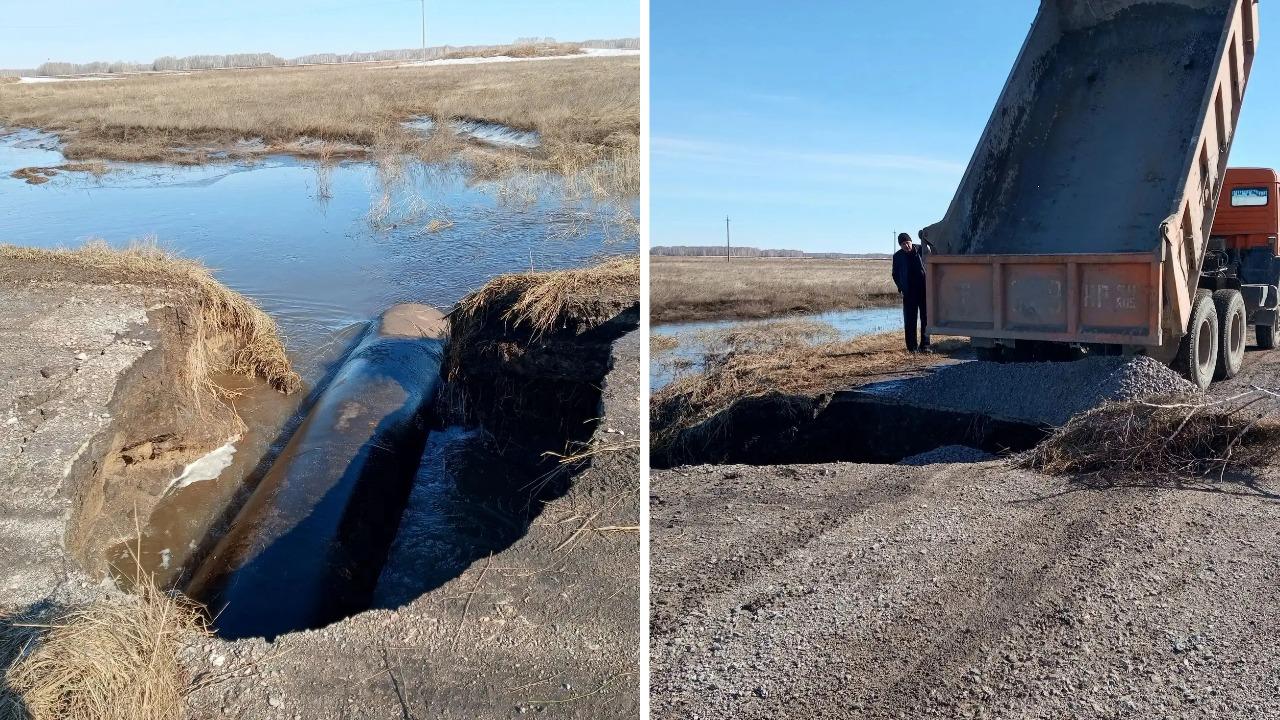 Объездных маршрутов на данный момент нет. На месте работают специалисты «Новосибирскавтодора» — они засыпают повреждённый участок щебнем и камнем, используют песчано-гравийную смесь, а также очищают трубу.